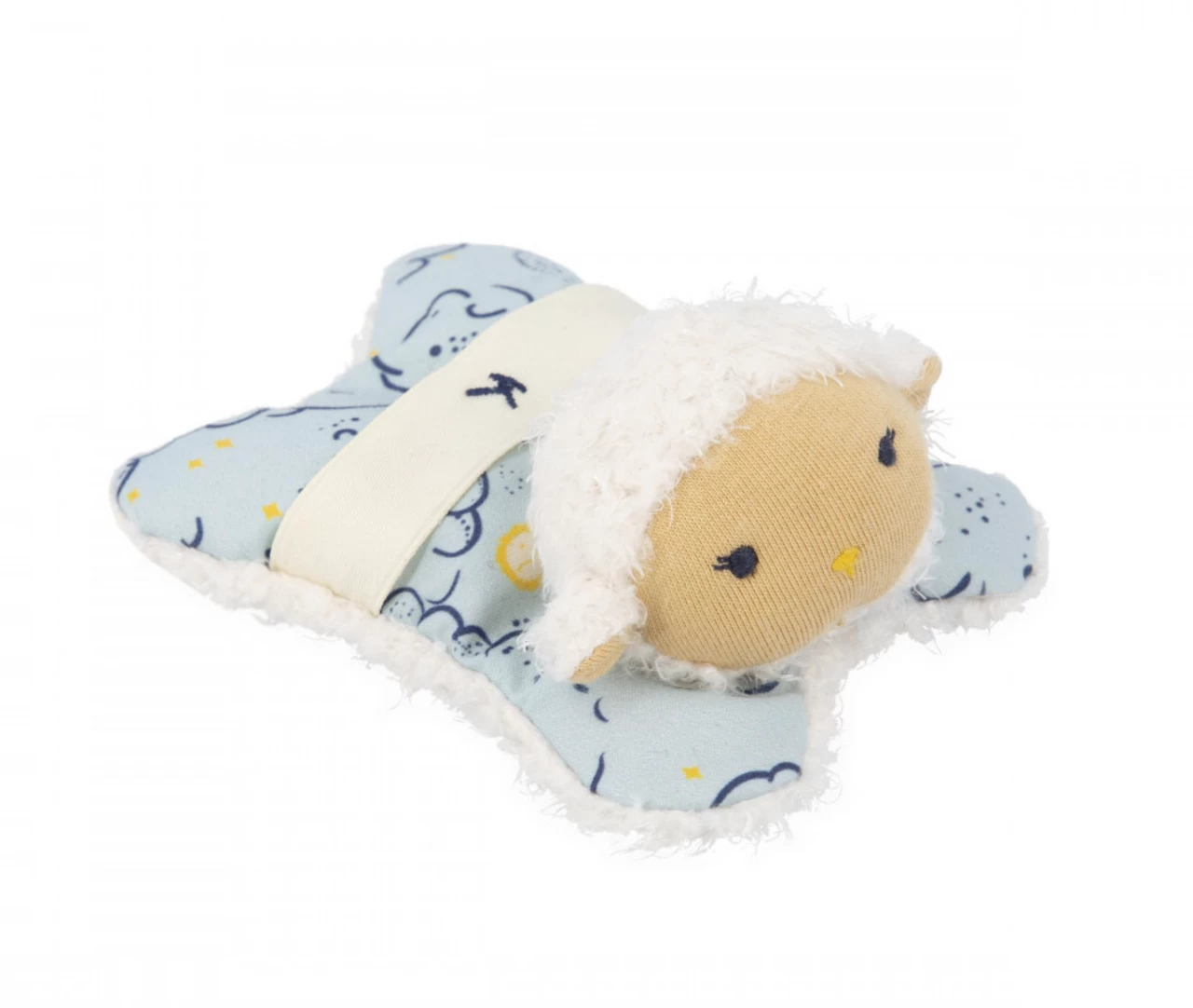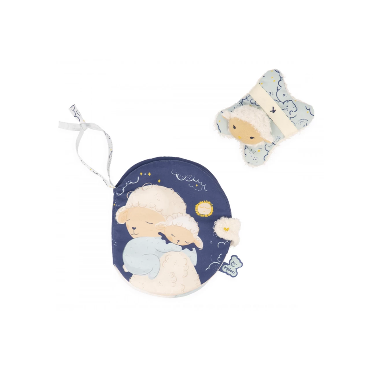 Discover the Doux Sommeil range, created on the theme of baby sleep, which is at the heart of parents’ concerns. The products designed are dedicated to bedtime to soothe baby from the first moments and help set up a bedtime ritual when he grows up. Our fabric picture guide (6,63 inches) helps to prepare for the bedtime ritual. It tells the little story of baby sheep before going to bed: his parent tells him a nice story to help him fall asleep, then puts him in bed with his doudou and tenderly caresses his face. He gives him his cuddle and gentle kisses. Thus, baby sheep falls asleep peacefully. Throughout the pages, caress baby gently with the mini doudou sheep so that he falls asleep serenely. Machine washable. From birth.