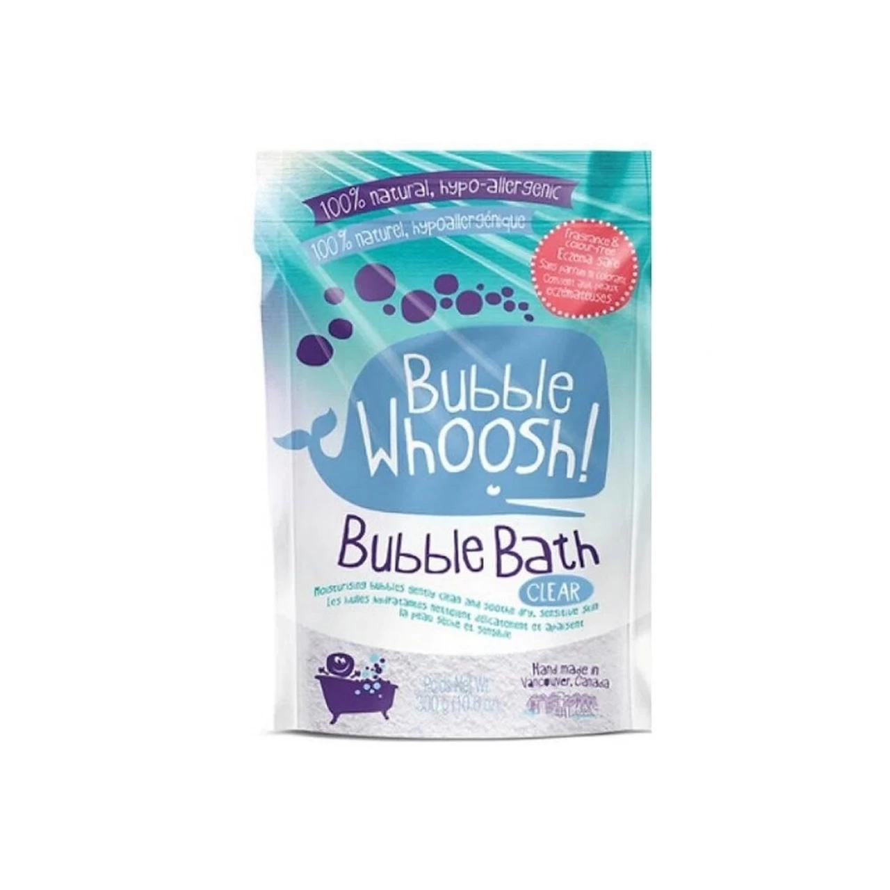 A skin-friendly, moisturizing foaming bath powder packed with ingredients known for their beneficial effect on skin. 100% GMO-free, vegan, gluten-free and non-toxic – no parabens, chemicals, phthalates, SLS or any known nasties. Coloured and scented Bubble Whoosh uses FDA approved food and cosmetic grade scents and colours.