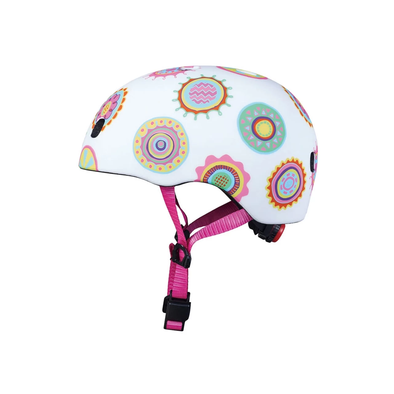 We believe every child should wear a helmet when they scoot or cycle. Our PC helmets come packed with the very latest technology to ensure even the smallest adventurers are safe on every scooting adventure. These helmets are incredibly lightweight yet supremely strong. The innovative Fidlock buckle combines a magnetic fastener and mechanical locking to make opening a closing super easy. Integrated rear light for extra visibility. Rear spin dial for the perfect fit and adjustable easy to close straps for added security. Exquisitely built, beautifully designed – a MICRO head is a happily protected head.