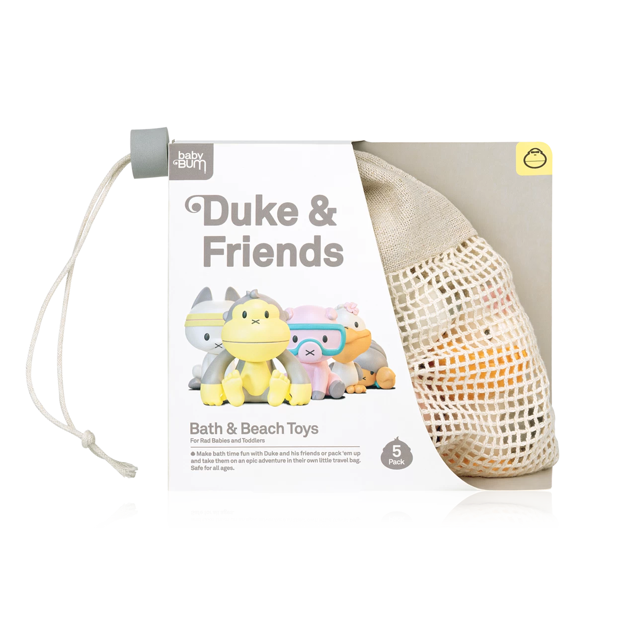 Make bath time fun with Duke & friends with this 5-piece bath toy set.